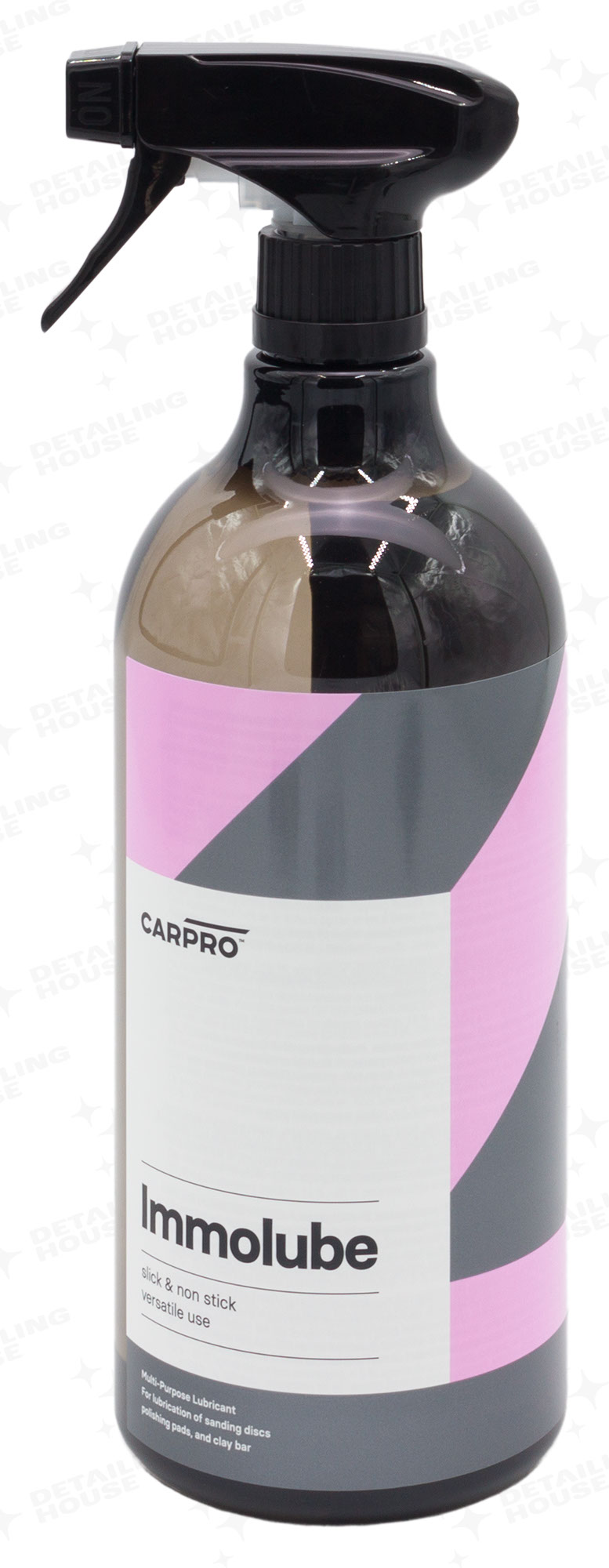 CarPro ImmoLube Multi Pourpose Lubricant – to produkt który został zaprojektowany w celu ułatwienia usuwania wszelakich zanieczyszczeń osadzonych na lakierze takich jak smoły, kleje, smary itp. Przeznaczony jest do używania z glinkami o różnych twardościach. Produkt ten delikatnie rozmiękcza osady dzięki czemu zmniejszamy ryzyko zarysowania lakieru podczas glinkowania.