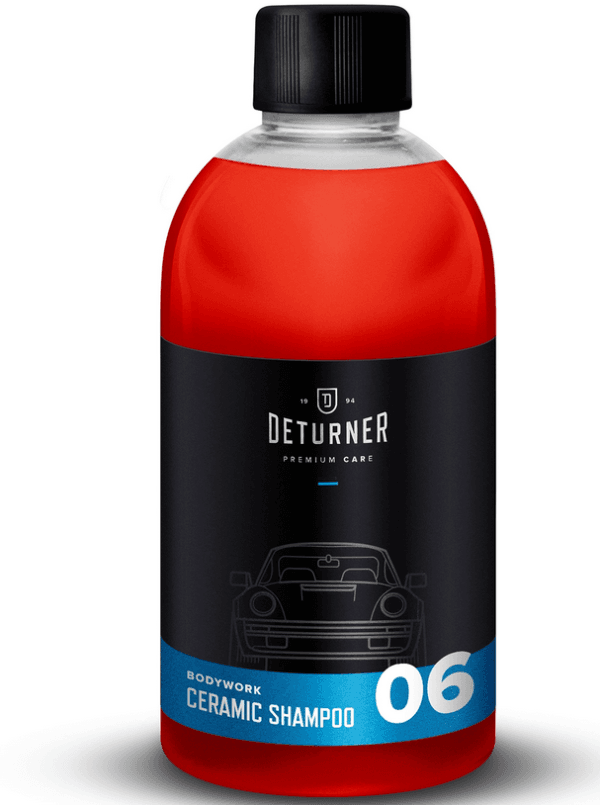 Deturner Ceramic Shampoo – to innowacyjny szampon z dodatkiem cząstek SiO2, który jest idealnym wyborem do pielęgnacji samochodów zabezpieczonych powłokami ceramicznymi. Dzięki wysokiej zawartości SiO2 tworzy silnie hydrofobową powłokę na takich powierzchniach jak lakier, felgi, szkło czy plastik. Pomimo neutralnego pH ma świetne właściwości myjące i zapewnia niesamowity poślizg rękawicy. Jest to najprostszy i najszybszy sposób na zabezpieczenie lakieru podczas mycia.  Doskonale nadaje się do konserwacji wcześniej zaaplikowanych wosków i sealantów zwiększając ich połysk i żywotność.