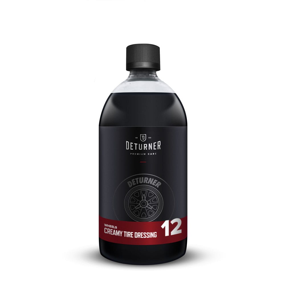 Deturner Creamy Tire Dressing – przeznaczony do impregnacji i zabezpieczenia opon oraz plastików zewnętrznych. Formuła stworzona jest na bazie wody oraz SiO2, dzięki temu jest wolny od rozpuszczalników. Przywraca świeży czarny wygląd i daje satynowe wykończenie. Kremowa konsystencja pozwala przyjemnie i równomiernie rozprowadzić dressing we wszystkich trudno dostępnych miejscach opony przy tym nie pozostawiając tłustego nalotu. Posiada bardzo dobre właściwości hydrofobowe oraz spowalniające osadzanie się brudu.