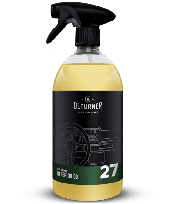 Deturner Interior QD – to produkt przeznaczony szybkiego odświeżenia wszystkich powierzchni wewnątrz auta m.in. plastiku, winylu, gumy, aluminium, chromów, piano black i ekranów LCD. Stworzony do codziennej i szybkiej pielęgnacji. Usuwa wszelkie drobne zabrudzenia, pozostawiając powierzchnie widocznie przyciemnioną oraz matową. W jednym kroku czyści, zabezpiecza oraz zmniejsza osiadanie kurzu. Jest łatwy w użyciu, samoistnie odparowuje z powierzchni i nie pozostawia smug na gładkich plastikach.