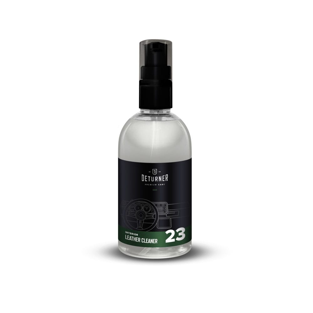 Deturner Leather Cleaner – Bezpieczny preparat do czyszczenia skórzanej tapicerki samochodowej. Produkt gotowy do użytku w butelce z pianowniczką. Posiada odpowiednie właściwości pieniące, dzięki którym unikniemy przemaczania skóry. Pozostawi czystą i matową powierzchnię, a mimo to nie wysuszy skóry. Produkt jest dedykowany do usuwania zabrudzeń i plam na wszystkich skórach gładkich, sztucznych i naturalnych. Do bieżącej pielęgnacji produkt można rozcieńczyć 1:1.