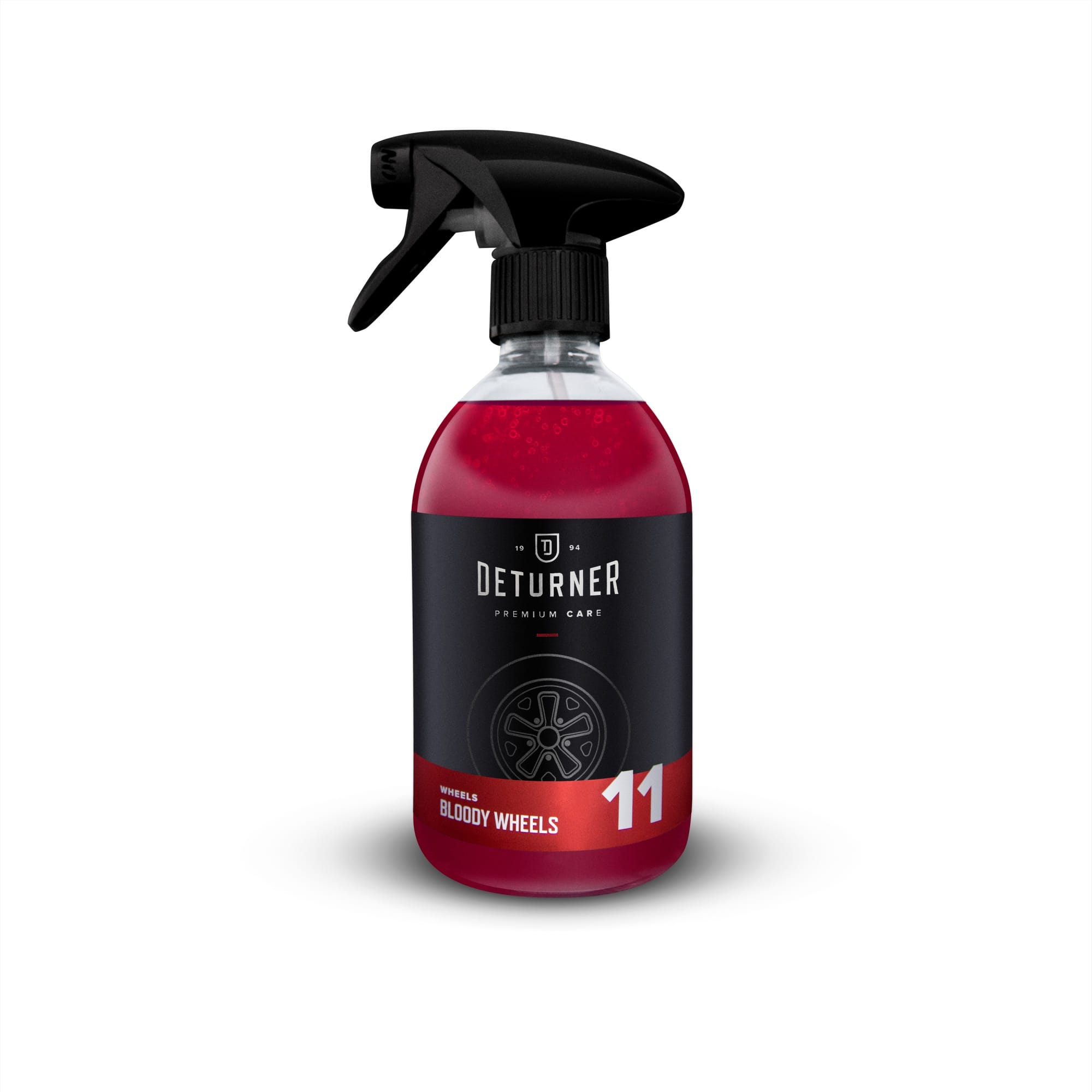 Deturner Bloody Wheels - a product for systematic cleaning of rims and car paint from metallic impurities such as brake pad dust and volatile rust. It has a neutral pH, which makes it safe for all types of rims. Due to its consistency, it adheres to the surface, which makes it react with dirt longer.