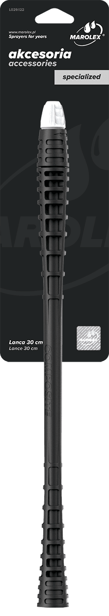 Composite lance created especially for industry ergo acid sprayers. Increases the operating range of the hand sprayer. The 30-centimeter section allows you to easily get to hard-to-reach places, e.g. in the car. Thanks to the universal design of the lance tip, it can be retrofitted with any nozzle from our offer.