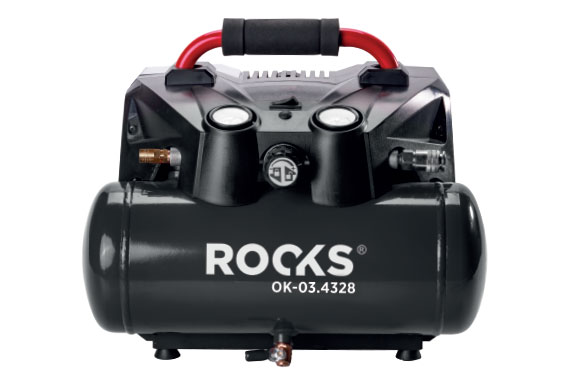 The ROOKS compressor has a safety valve, two pressure gauges (the main one, which measures the pressure in the tank, and the second one, which supplies the reduced pressure behind the regulator), a standard quick connector for the cable and a valve for draining condensate.