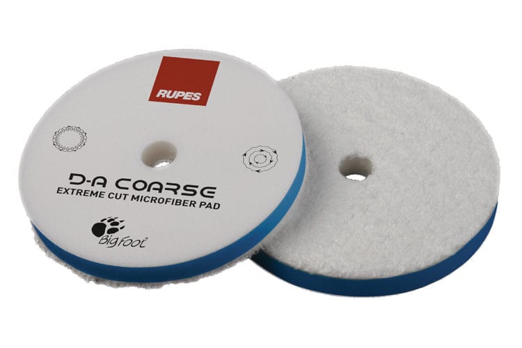 Rupes DA Coarse Extreme Cut Microfiber Pad - a microfiber polishing disc designed for quick removal of larger paint defects, sanding scratches and scratches on fully cured or hard coatings on flat surfaces. The use of a sponge with appropriate density and resistance to lateral deformation combined with a special type of microfiber ensures quick and effective work when using Dual Action and planetary polisher.
