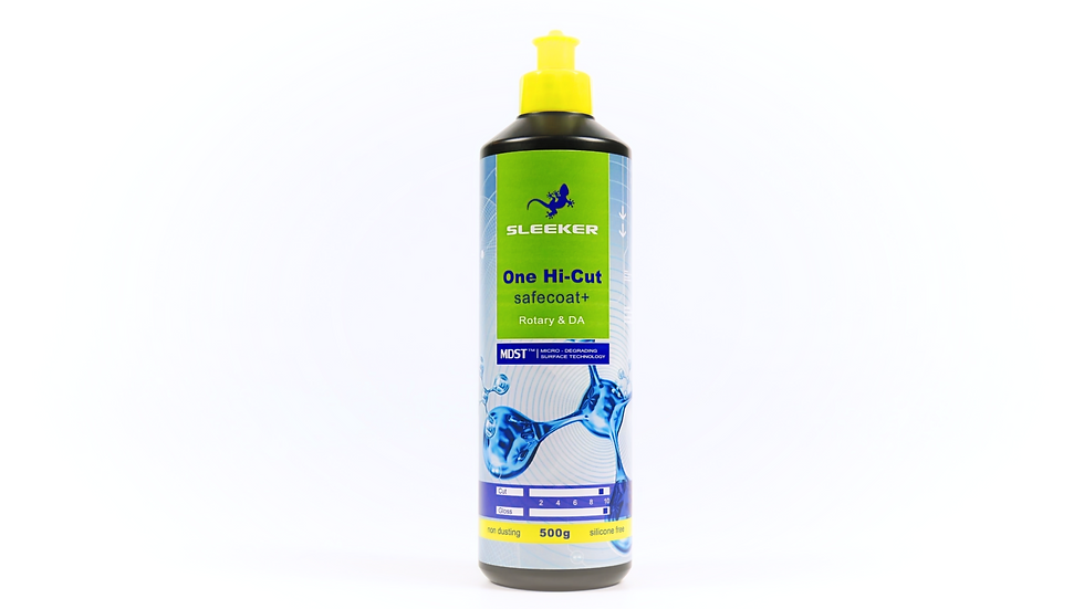 Sleeker ONE Hi-Cut to jednoetapowa pasta polerska typu AIO. Jej charakterystyka pozycjonuje ją wśród past o bardzo dużej sile cięcia i bardzo dobrym wykończeniu oraz jednoczesnym zabezpieczeniu powierzchni związkami polimerów utrzymującymi się kilka tygodni.