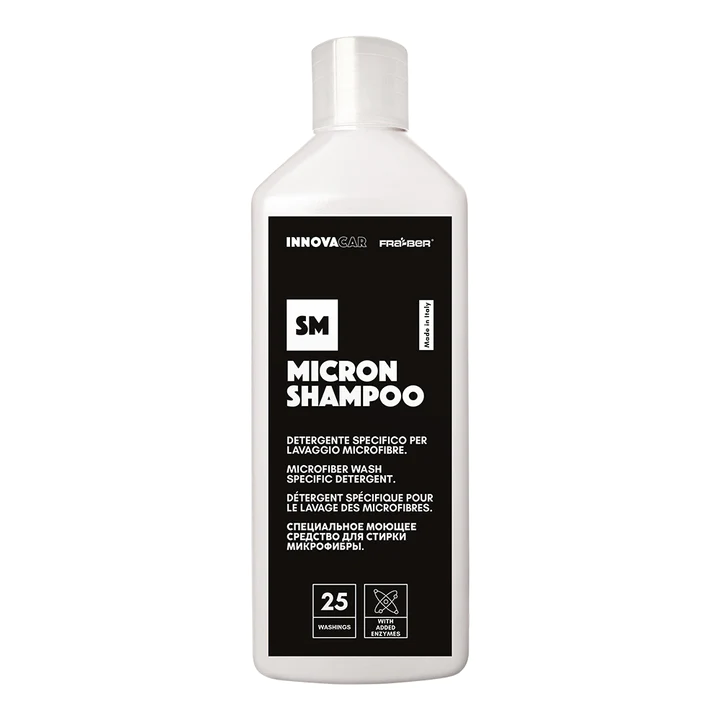 Innovacar SM Micron Shampoo – to specjalny detergent i środek czyszczący do akcesoriów i ściereczek z mikrofibry, padów polerskich, pokrowców samochodowych, odpowiedni zarówno do prania ręcznego, jak i do prania w pralce.