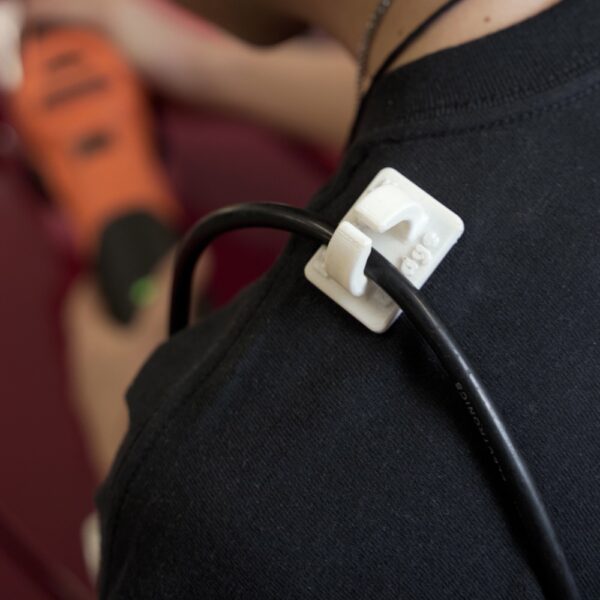 Bardzo proste w obsłudze akcesorium wykonane w technologii druku 3D składa się z dwóch części które łączą się za pomocą 4 silnych magnesów, żeby zapewnić utrzymanie przewodu we właściwym miejscu i zapobiec osuwaniu się go z ramienia podczas pracy.