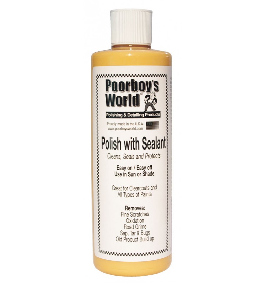 POORBOY’S Polish with Sealant to produkt typu AIO (All In One). Za pomocą jednej łatwej aplikacji oczyszcza lakier oraz zabezpiecza go. Nie zawiera ścierniwa, oczyszcza skutecznie lakier bazując na chemicznych właściwościach czyszczących. Dzięki zawartości syntetycznych polimerów zapewnia ochronę oraz głębię koloru i połysk. Idealny wybór dla osób nie mogących poświęcić dużej ilości czasu na przeprowadzenie złożonego procesu pielęgnacji lakieru kilkoma różnymi środkami. Krótko zwięźle i na temat, za jednym zamachem zapewnia doskonałą prezencję samochodu.