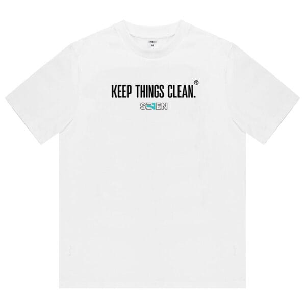 Koszulka biała SEVEN z logiem KEEP THINGS CLEAN. Wykonana w 100 % z bawełny.