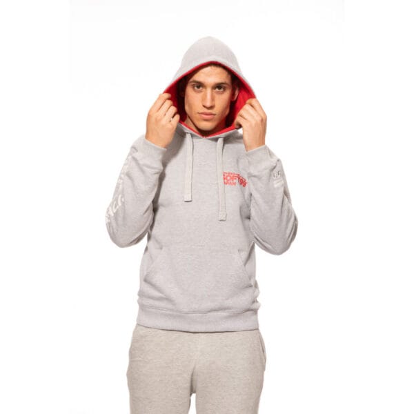 Szara bluza typu hoodie z czerwonym kapturem, nawiązującym do kolorów marki. Z najwyższej jakości bawełny drapowanej o gramaturze 350. Czerwony logotyp Soft99 Japan i napis w języku japońskim oznaczający „Soft99 Corporation” na sercu. Dodatkowo haftowane logo na lewym nadgarstku oraz powtórzenie claimu na prawym ramieniu.