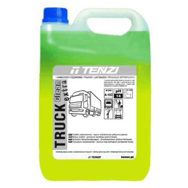Tenzi Truck Clean Extra – wzmocniona formuła produktu do mycia skrajnie zabrudzonych powierzchni twardych, odpornych na alkalia. Pieniący, szybko działający, skuteczny. Możliwość wykorzystania preparatu do mycia pojazdów, maszyn i urządzeń w przemyśle motoryzacyjnym ciężkim, a także w rolnictwie. Skuteczny i wydajny, usuwa smary, oleje i tłuszcze. Nie stosować do mycia powierzchni i urządzeń mających kontakt z żywnością.