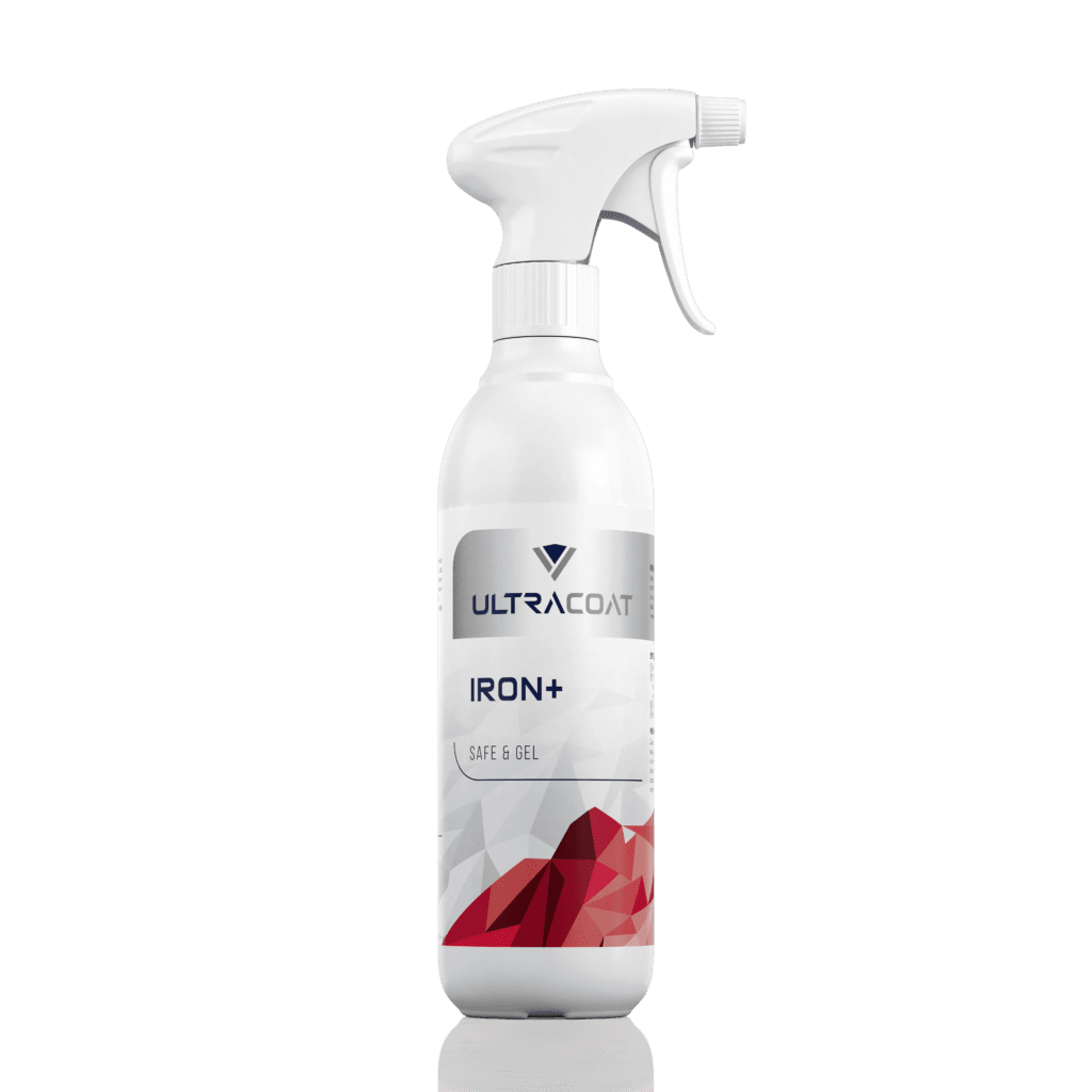 Ultracoat Iron+ – to produkt służący do usuwania zabrudzeń metalicznych i lotnej rdzy. Żelowa struktura Iron+ zapewnia długi czas działania czyszczonej powierzchni. Produkt posiada neutralne pH, co sprawia, że jest w pełni bezpieczny dla karoserii, felg, chromu, gumy, szkła a przede wszystkim dla Ciebie. Wywołuje dobrze znany efekt krwawienia. Szybko i głęboko penetruje czyszczoną powierzchnię, dlatego rezultat działania Iron+ możesz dostrzec już chwilę po aplikacji. Cząsteczki rdzy, czy opiłków hamulcowych bez trudu odchodzą z czyszczonego elementu, pozostawiając go w stanie wolnym od jakichkolwiek zabrudzeń metalicznych.