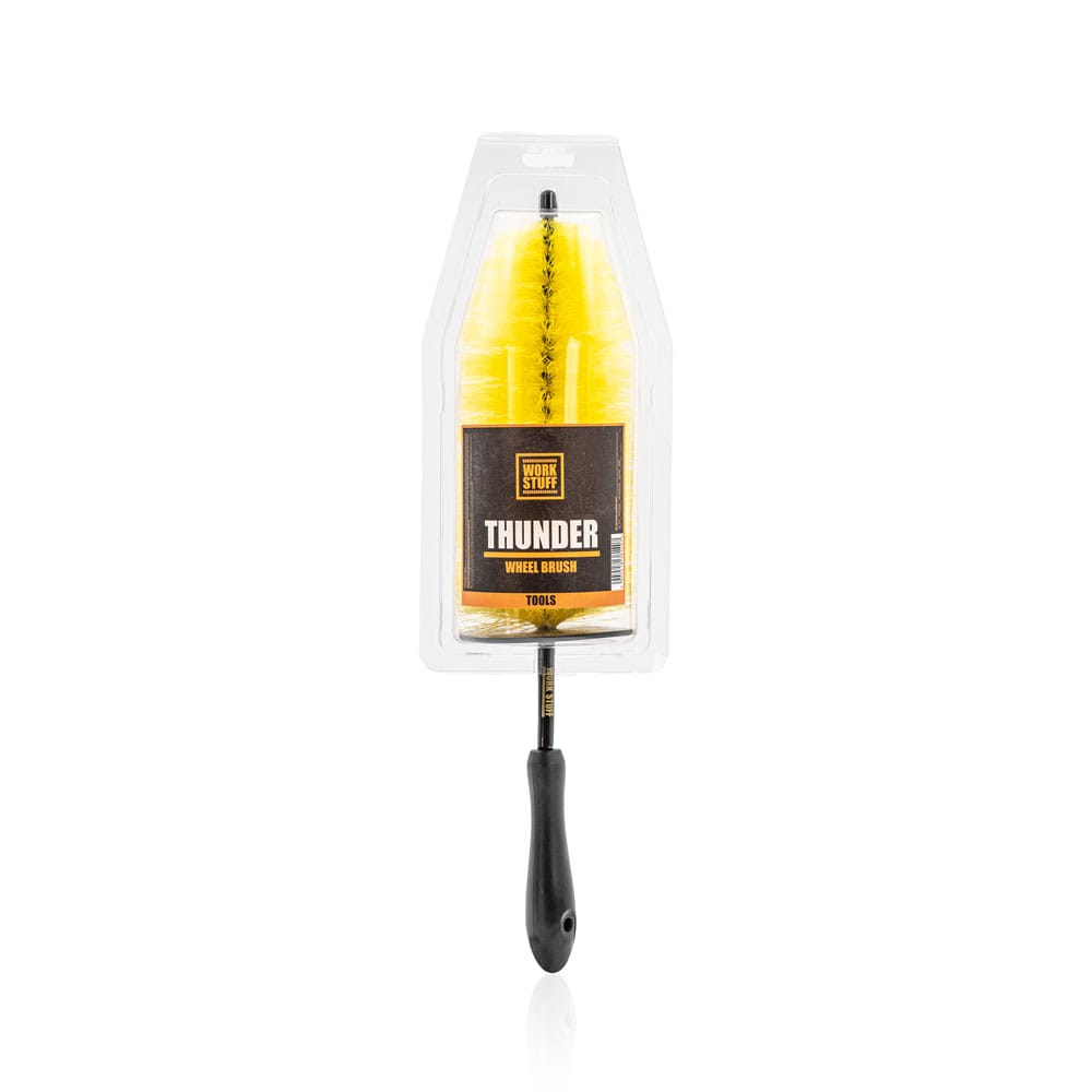 Work Stuff Thunder Wheel Brush – profesjonalna szczotka do mycia felg. Produkt cechuje się zwiększoną delikatnością włosia w porównaniu z podobnymi szczotkami. Thunder dzięki swojej elastyczności z łatwością dotrze do nawet najbardziej trudno dostępnych miejsc. Do innych zalet należy dodać odporność chemiczną i łatwość czyszczenia po użytkowaniu.